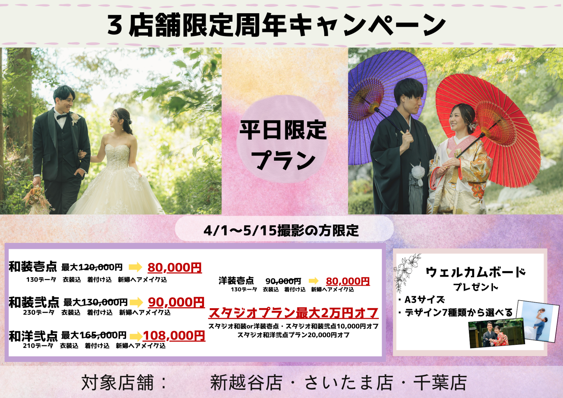 和と洋の撮影を満喫していただけます。¥95,000