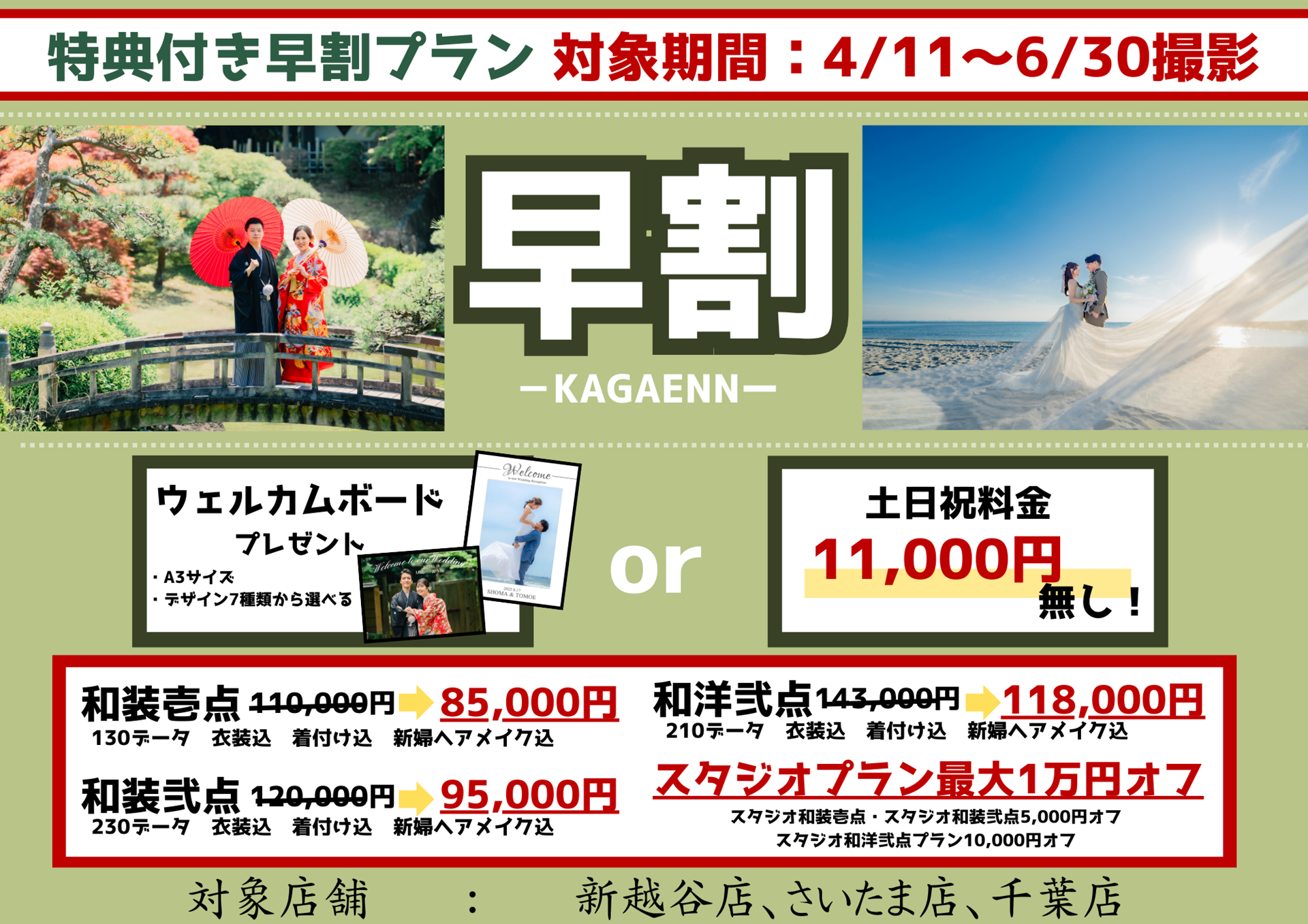 双方での撮影も選択できます。¥110,000 ~ 140,000